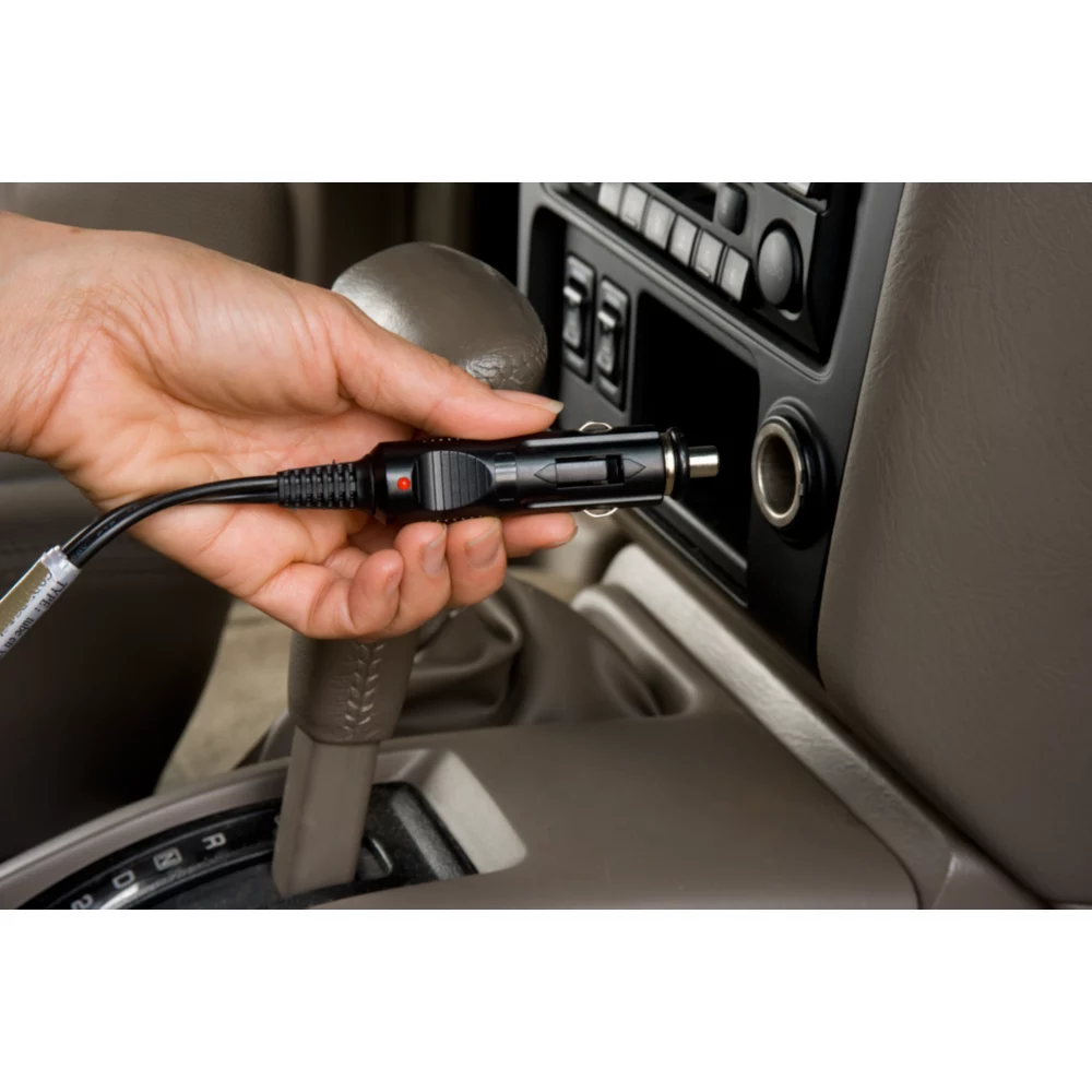 - 12V plug (5 Amps/60 Watts) with an 8-ft. power cord lets you power the pump from your car or boat outlet