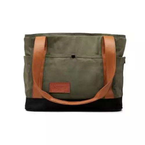 Waxed canvas exterior repels dirt and water; faux leather accents withstand scratches and scrapes
