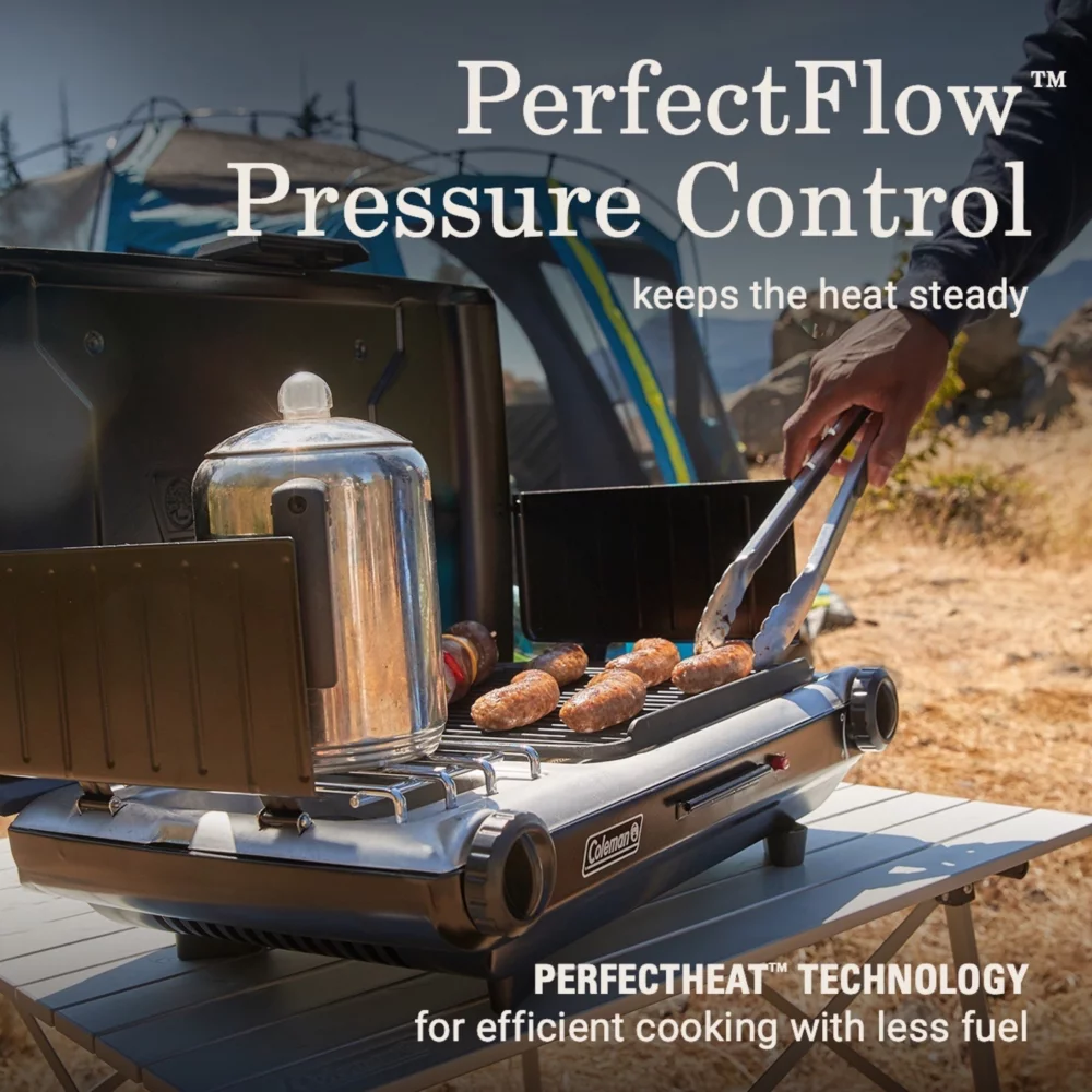 - 2 INDEPENDENTLY ADJUSTABLE BURNERS: For precise temperature control; PerfectFlow™ pressure control and PerfectHeat™ technology to keep the heat steady with less fuel
