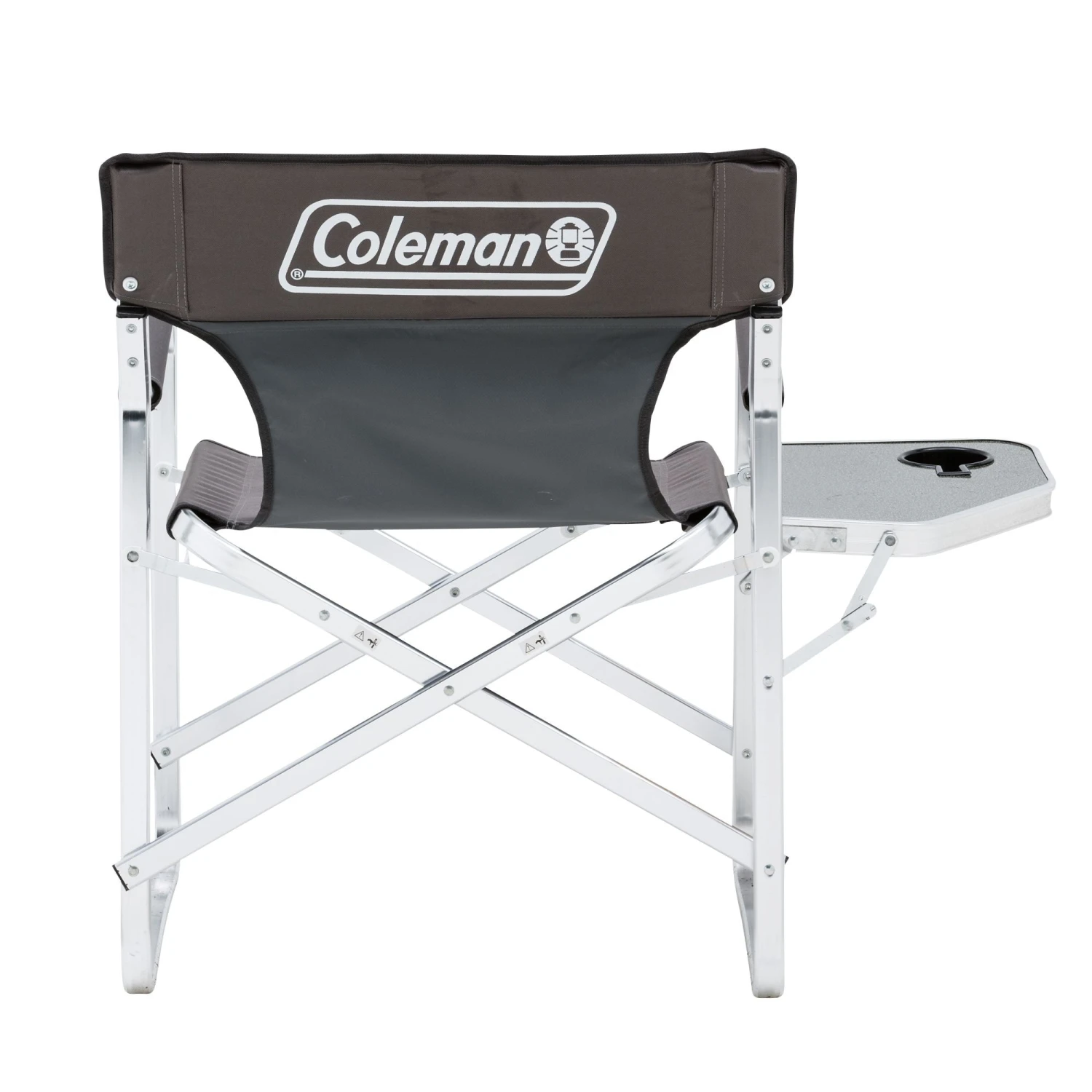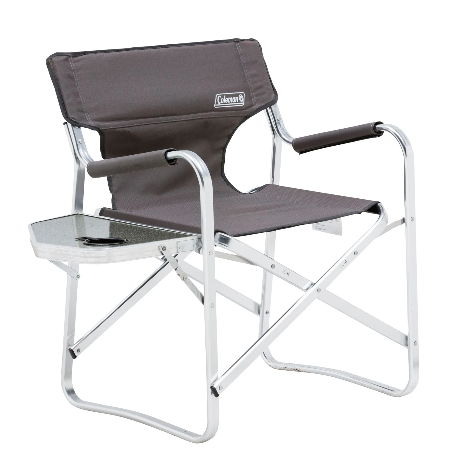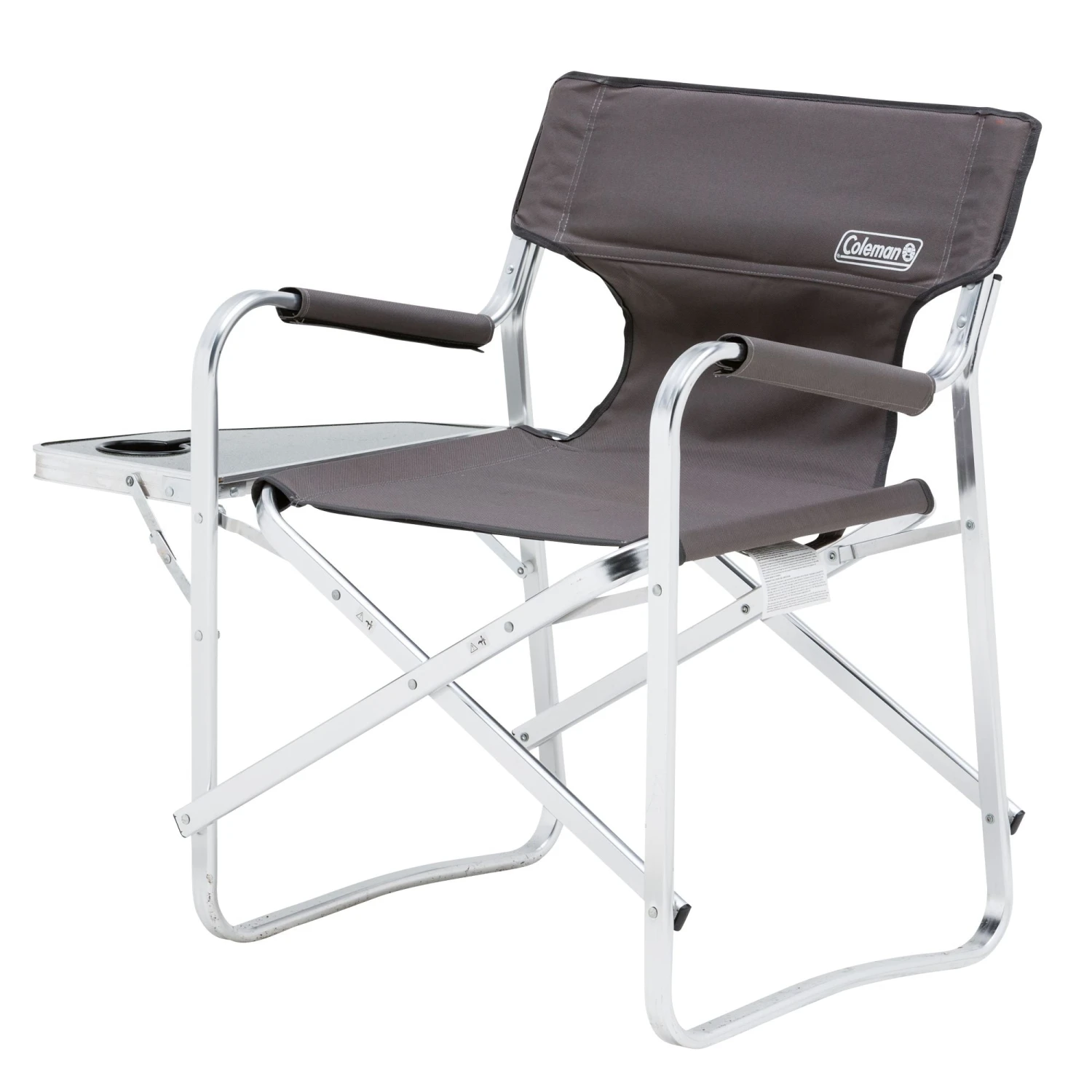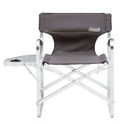 A classic design, the Coleman Directors Chair Plus looks like the directors chairs of years gone by, with the added benefit of a sturdy side table and drink holder.The loop style aluminium frame is ideal for tent floors and is super lightweight for easy transport. The side table folds down independently of the chair and the seat and back rest are fully padded.