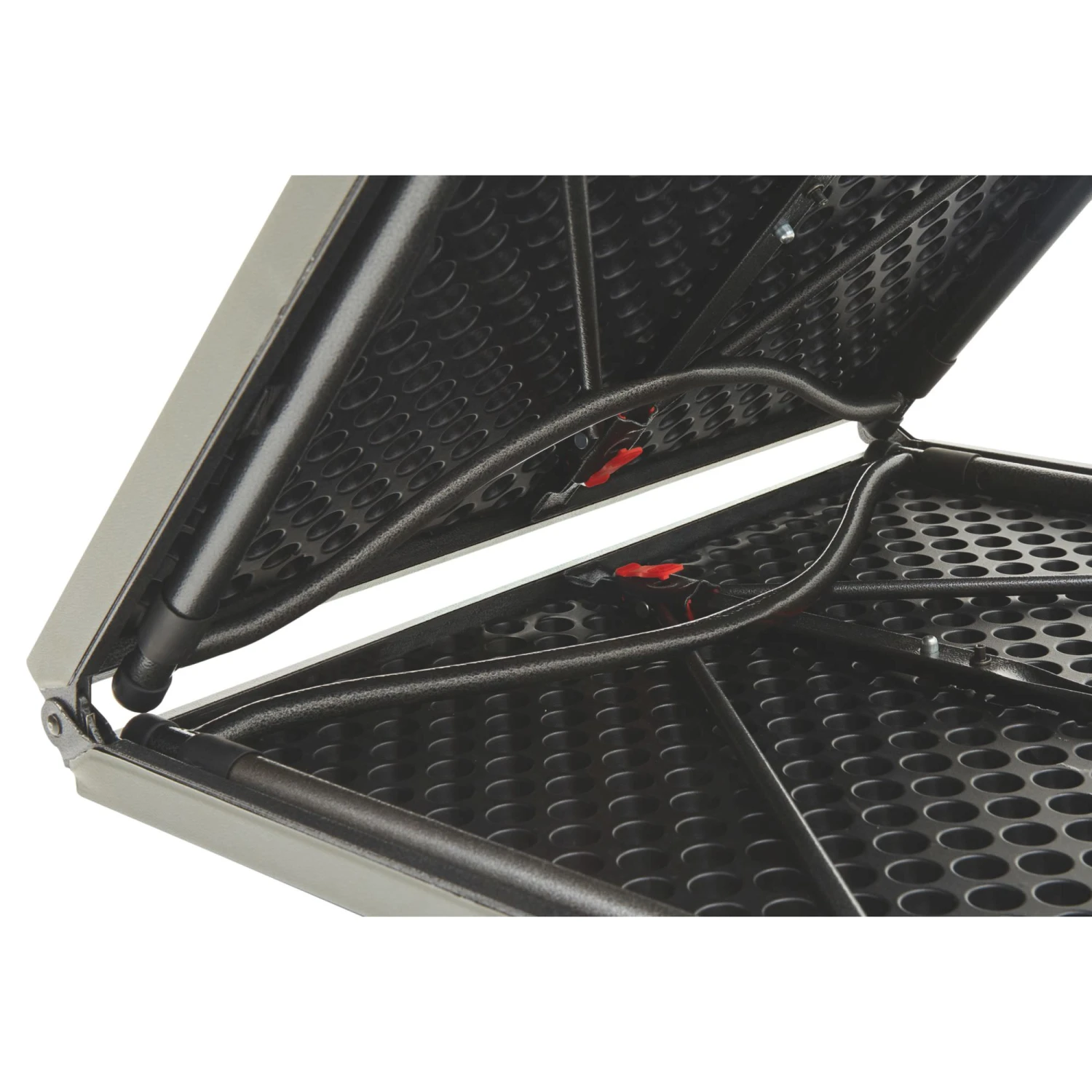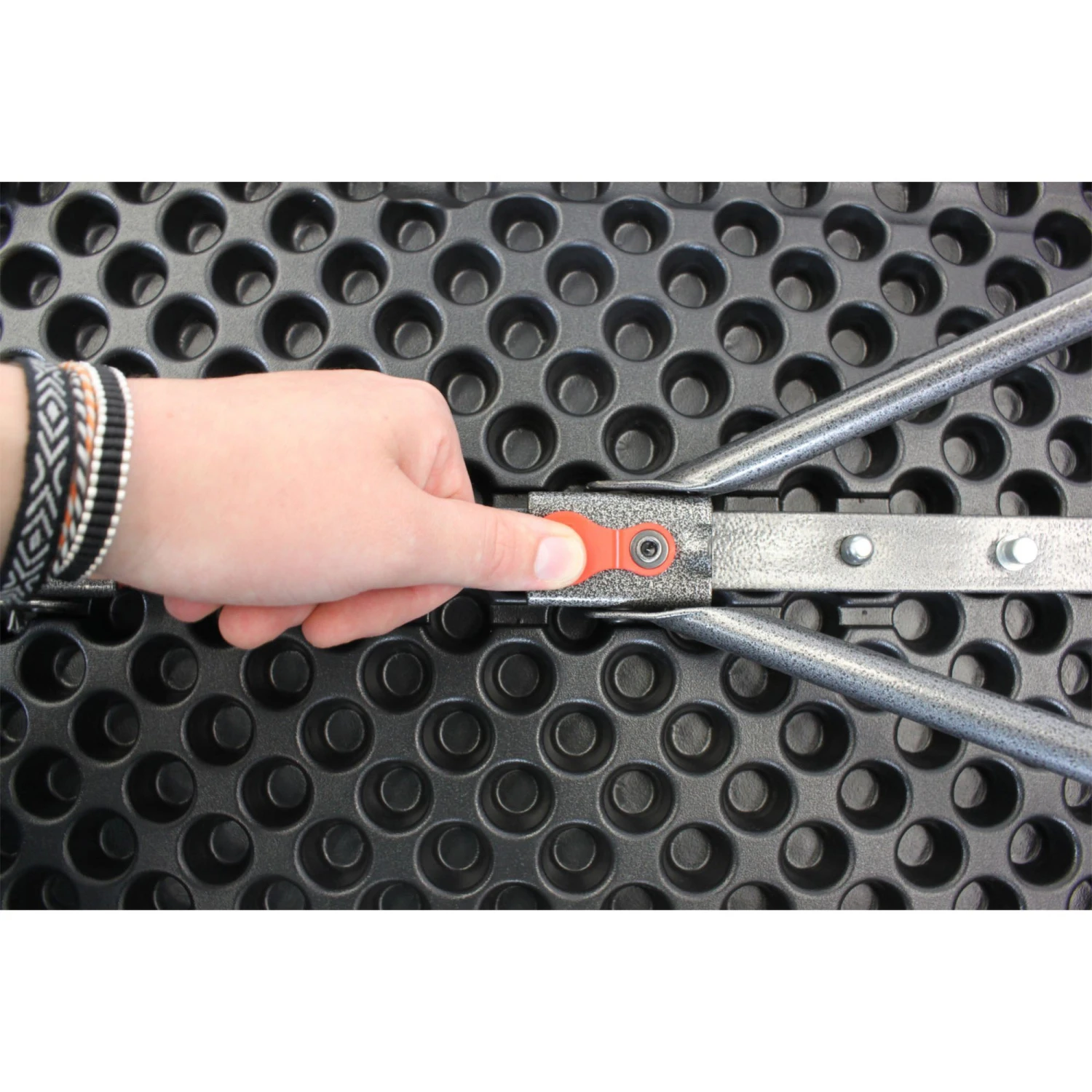 - Pinch free safety hinge lock to keep table securely in pack down position