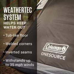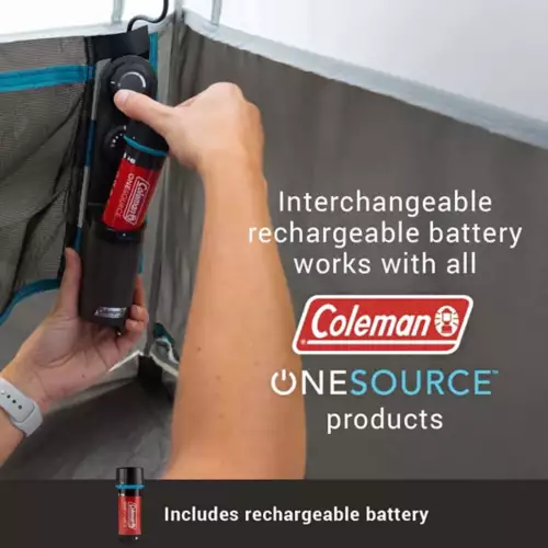 Part of a system that powers outdoor gear, the OneSource 4-Person Camping Dome Tent with Airflow System & LED Lighting lets you enjoy time outdoors with friends and family comfortably. An integrated fan refreshes the air in the tent 6 times per hour to reduce humidity, and LED lighting offers warm diffused light throughout the tent. The lithium-ion battery can be conveniently recharged from wall outlets, vehicles, universal power packs, or other OneSource batteries with the included USB cord. Bonus? The OneSource battery helps eliminate the need for multiple power sources by letting you charge external devices, like smartphones or tablets (not included), through a USB port, even while powering gear. One system, one source, power anywhere!