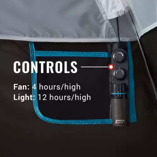 Part of a system that powers outdoor gear, the OneSource 6-Person Camping Dome Tent with Airflow System & LED Lighting lets you enjoy time outdoors with friends and family comfortably. An integrated fan refreshes the air in the tent 6 times per hour to reduce humidity, and LED lighting offers warm diffused light throughout the tent. The lithium-ion battery can be conveniently recharged from wall outlets, vehicles, universal power packs, or other OneSource batteries with the included USB cord. Bonus? The OneSource battery helps eliminate the need for multiple power sources by letting you charge external devices, like smartphones or tablets (not included), through a USB port, even while powering gear. One system, one source, power anywhere!