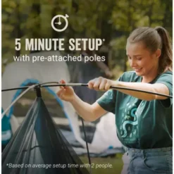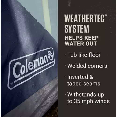 Sets up in under 5 minutes (based on average setup time with 2 people) so you spend less time pitching the tent and more time relaxing at the campsite. Go ahead and spread out, the Skydome Camping Tent XL fits 3 queen-sized airbeds so you and your family can camp in comfort. The nearly vertical walls offer more headroom. Plus, a wide door design means you can move airbeds, sleeping bags, and other gear in and out with ease. Large door awnings provide more weather protection and better airflow. An E-port makes it easy to access an extension cord so you can bring electrical power inside your tent. Downpour in the forecast? This tent features the WeatherTec system with a tub-like floor and patented welded corners, while inverted seams and taped seams on rainfly and tent body help keep water out. Plus, the strong frame has been tested to withstand up to 35 mph winds. The extra-large size makes this tent a great choice for car camping with a large group. So gather around and make some memories outside.
